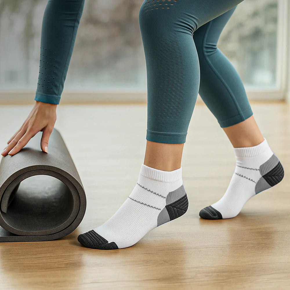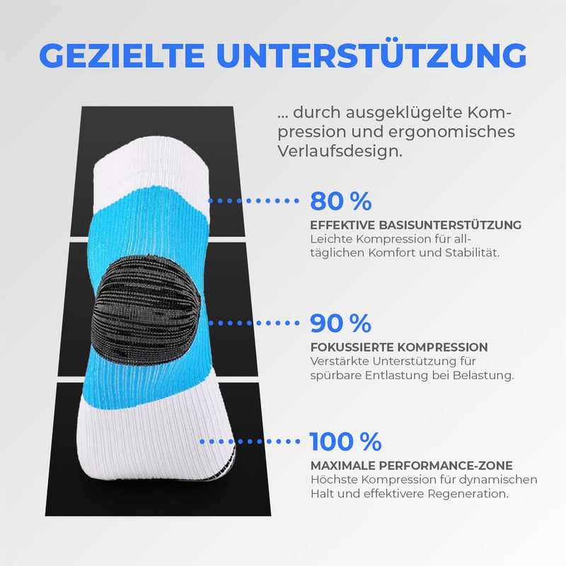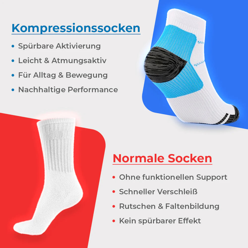 Herkömmliche Socken sehen zwar schlicht aus, vernachlässigen jedoch oft die Bedürfnisse aktiver Füße: Sie stützen nicht, schnüren ein, verrutschen oder fördern sogar ein feuchtes, unangenehmes Tragegefühl. Gerade bei langem Stehen, Sitzen oder in Bewegung fehlt es an gezielter Entlastung und Unterstützung.